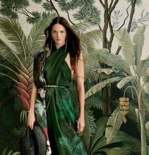 Johanna Ortiz春夏系列以马格达莱纳河为题,深情致敬哥伦比亚故土。飘逸半身裙、阔腿裤与优雅挂脖设计展现廓形多元...